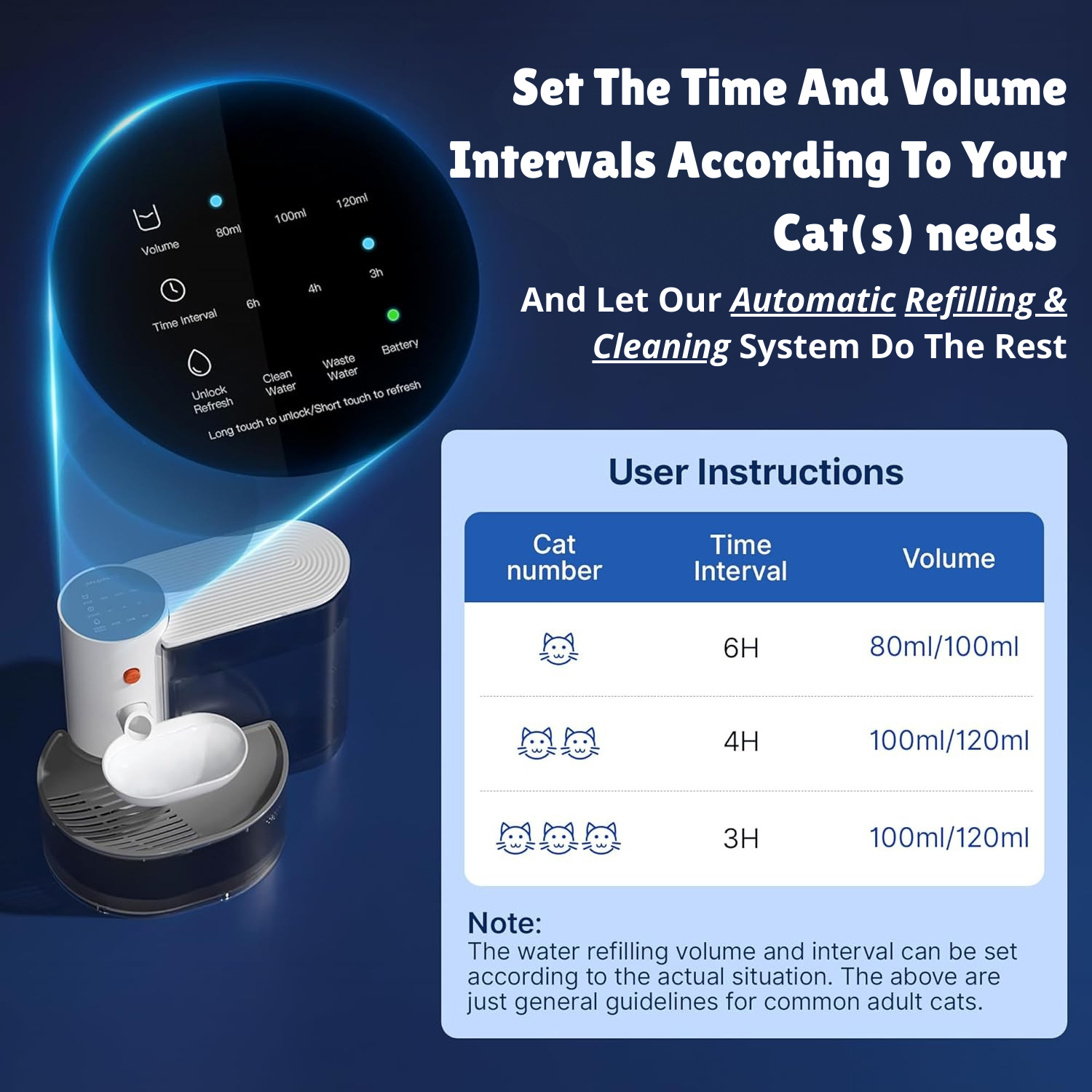 Traditional bowls and filtered fountains just recirculate the same dirty water—yuck. Our smart fountain automatically discards used water and replaces it with 100% clean, bacteria-free water every time your pet takes a sip.
